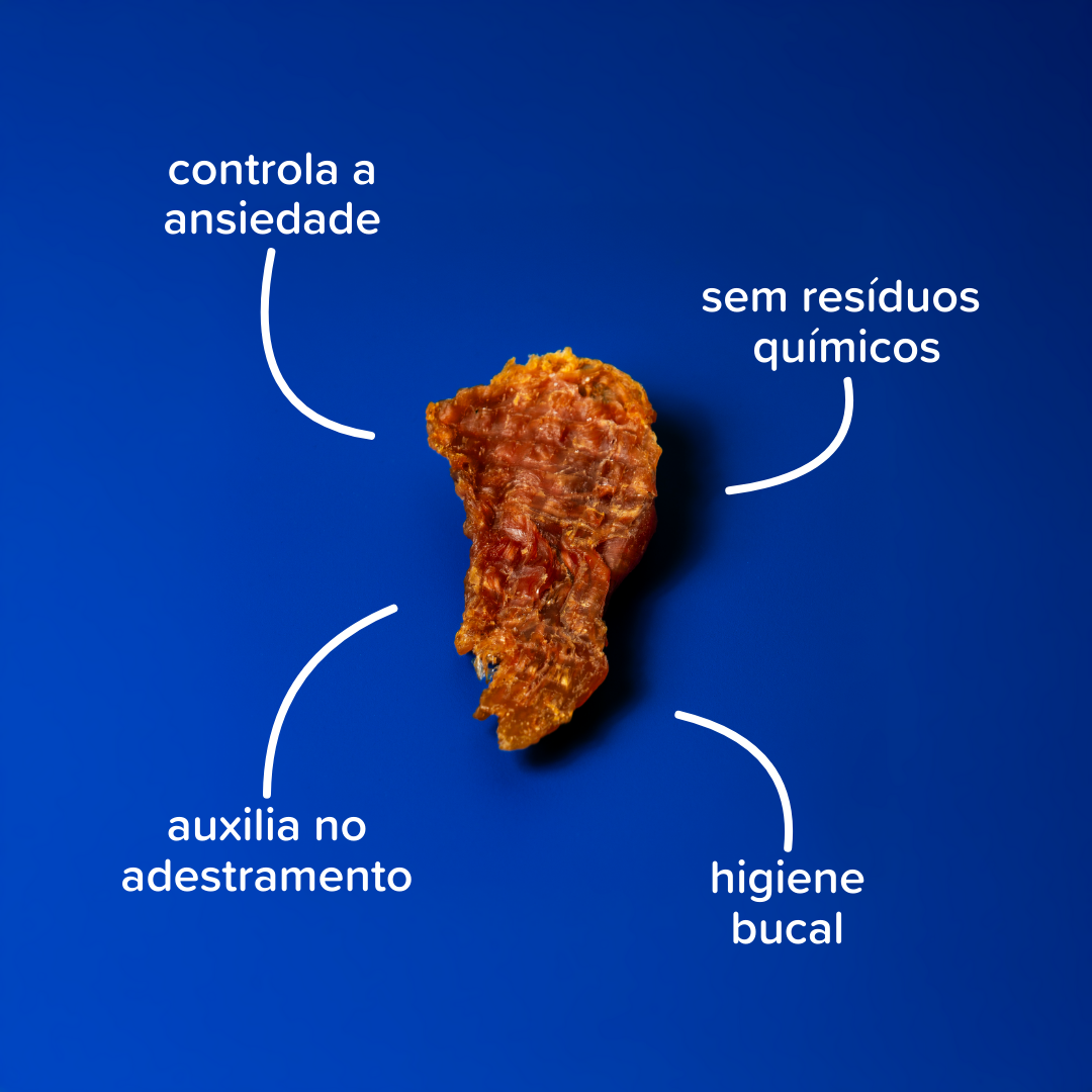 O Petisco Frangolino Natty Chews Sassami de Frango Desidratado é um produto de longa duração, que satisfaz o instinto de mastigação do animal e auxilia no controle do tártaro e higienização dos dentes. Utilizado como premiação, distração e brincadeira, contribuindo para a diminuição do estresse.